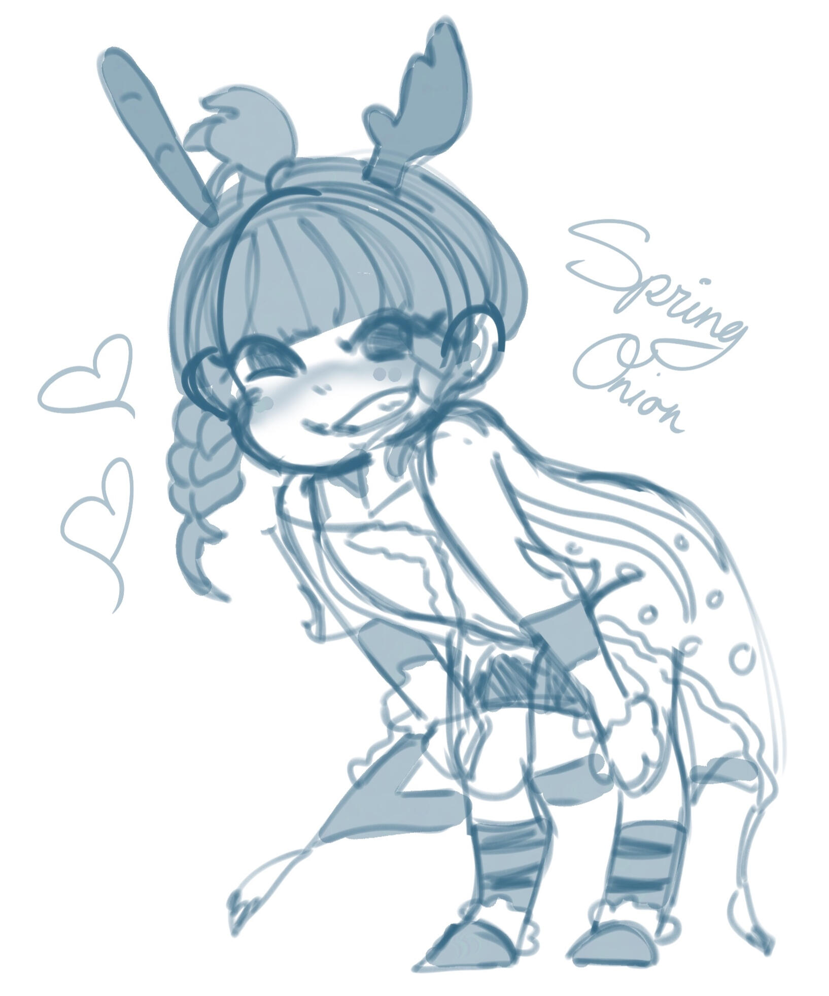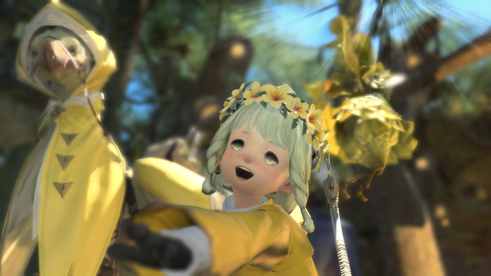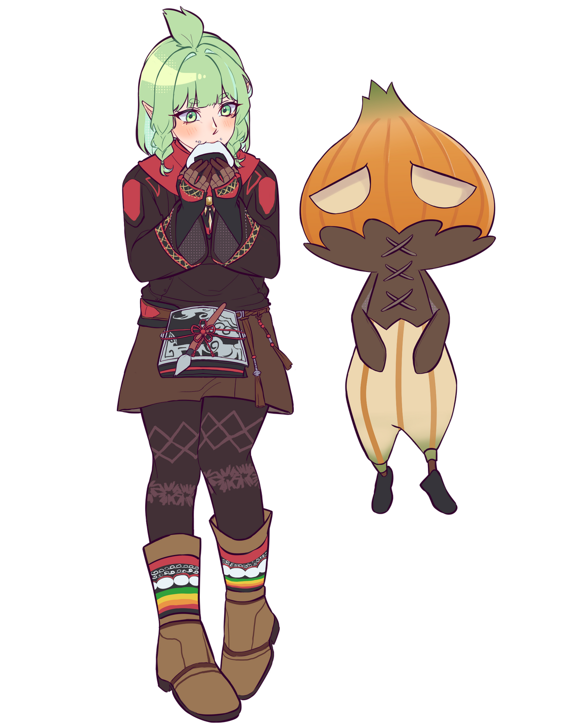 When Onion was just a little sprout she was found by the Sylphs in the East Shroud. Due to her vegetable-like appearance, the Sylphs took a liking to her and decided to raise her. It wasn't often that humans visited Little Solace, but when they did they asked if the so called ''little one'' had a name of their own. The Sylphs thought to themselves and came up with the name "Spring Onion", as she somewhat resembled one and was found during Spring. Onion had been referring to herself as ''This one'' up until this point, and changed this to her very own name: Onion. Referring to herself in third person may be a bit odd for regular people, but it is key to her characteristics.
